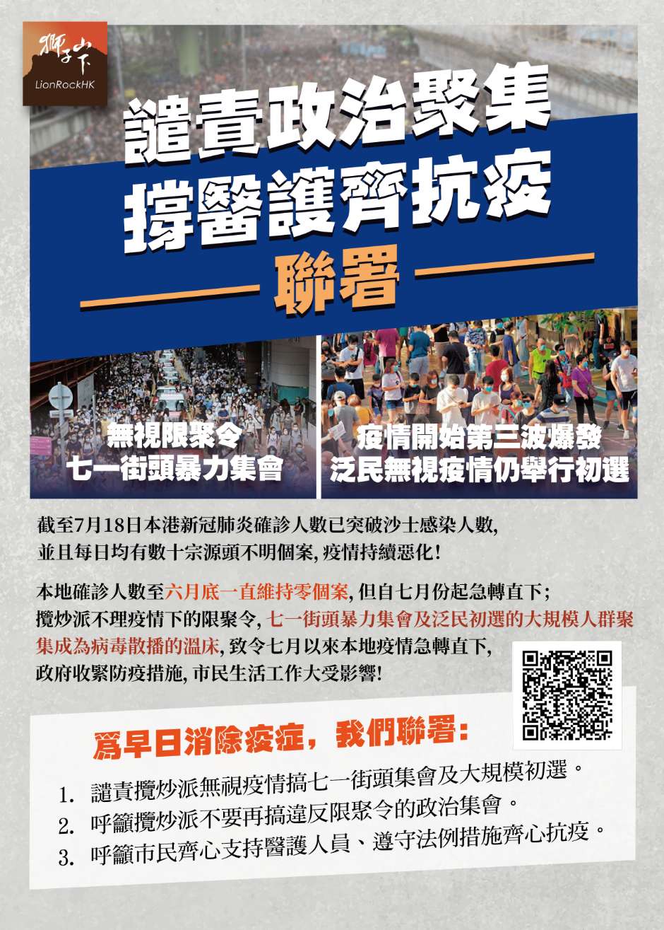 遣責政治聚集 撐醫護齊抗疫