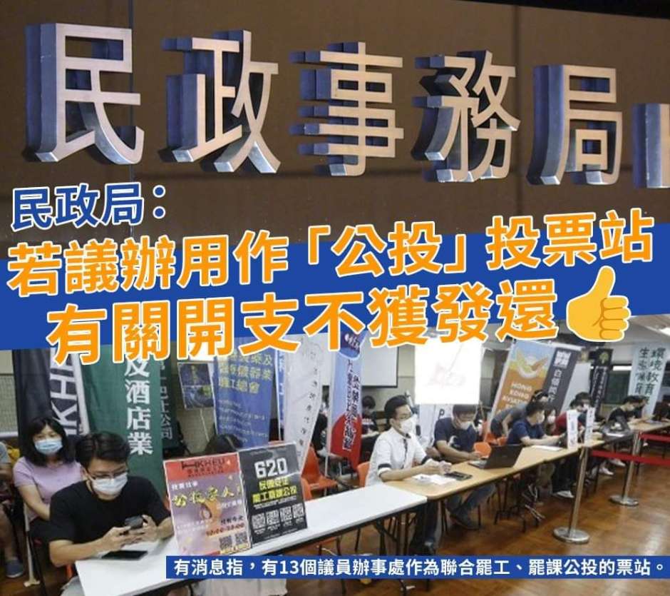 民政局:若議辦作「公投」投票站 將不會獲發辦事處開支