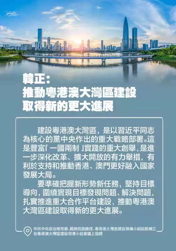 韓正:推動粵港澳大灣區建設 取得新的更大進展