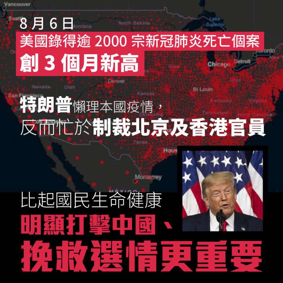 特朗普懶理本國疫情 ,反而忙於制裁北京及香港官員