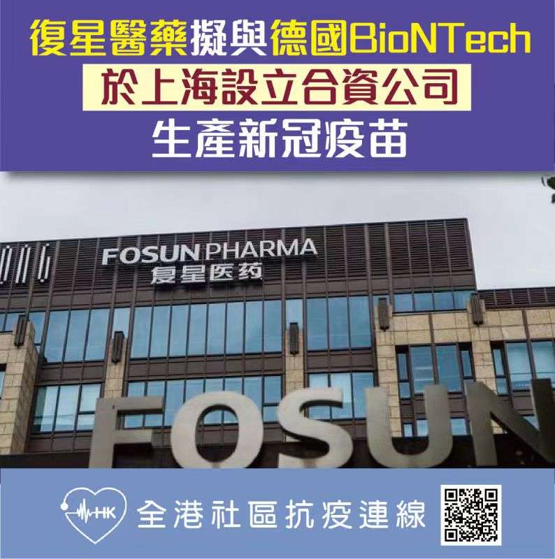 復星醫藥擬與德國BioTech於上海設立合資公司生產新冠疫苗