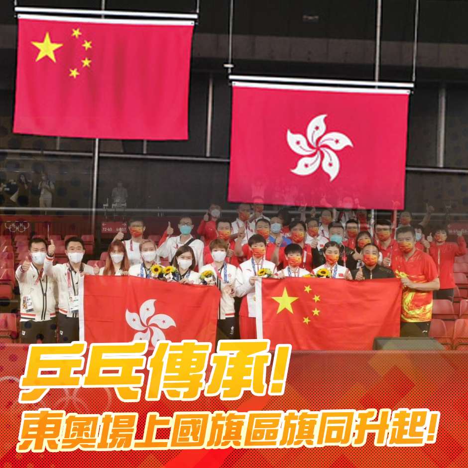 東奧牆上國旗區旗同時升起