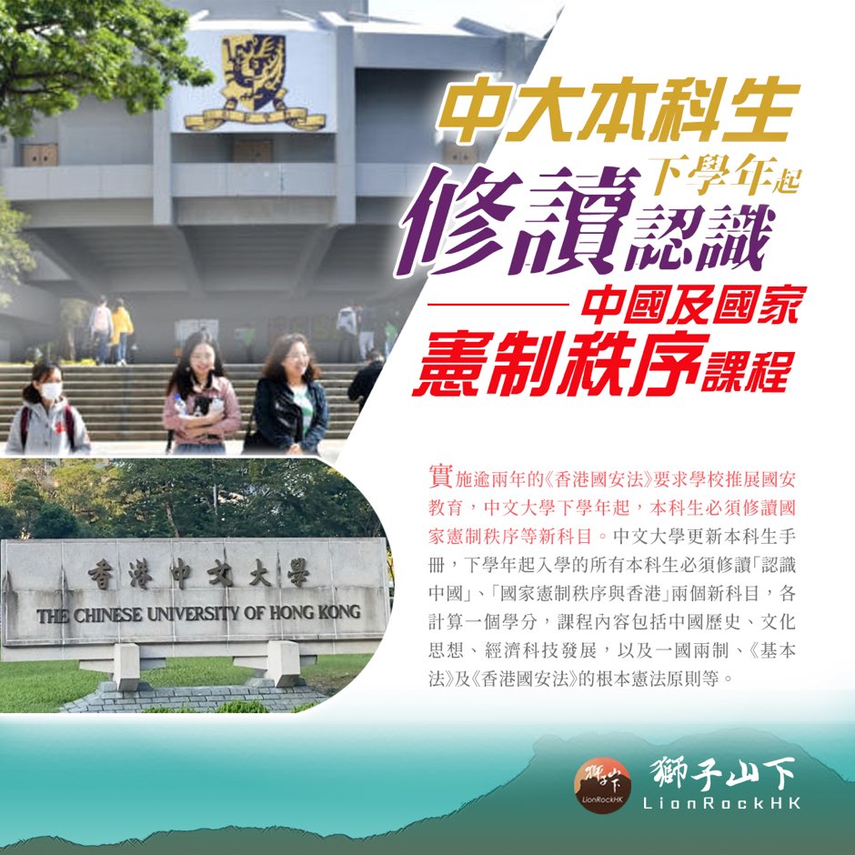 中大本科生下學年起修讀認識中國及國家憲制跌序課程