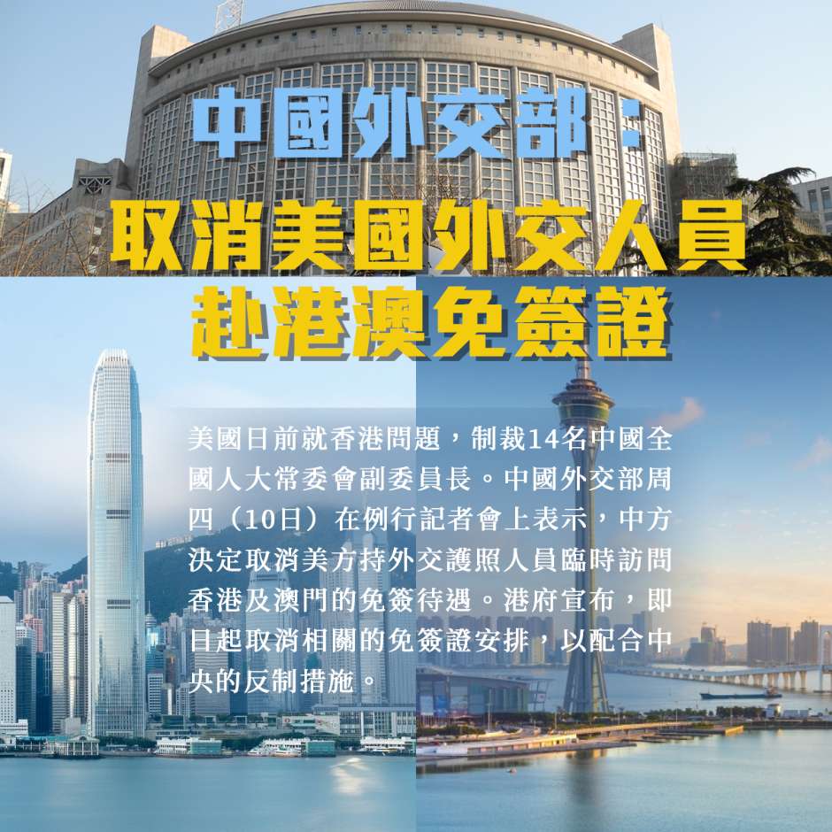 中國外交部:取消美國外交人員 赴港澳免簽證
