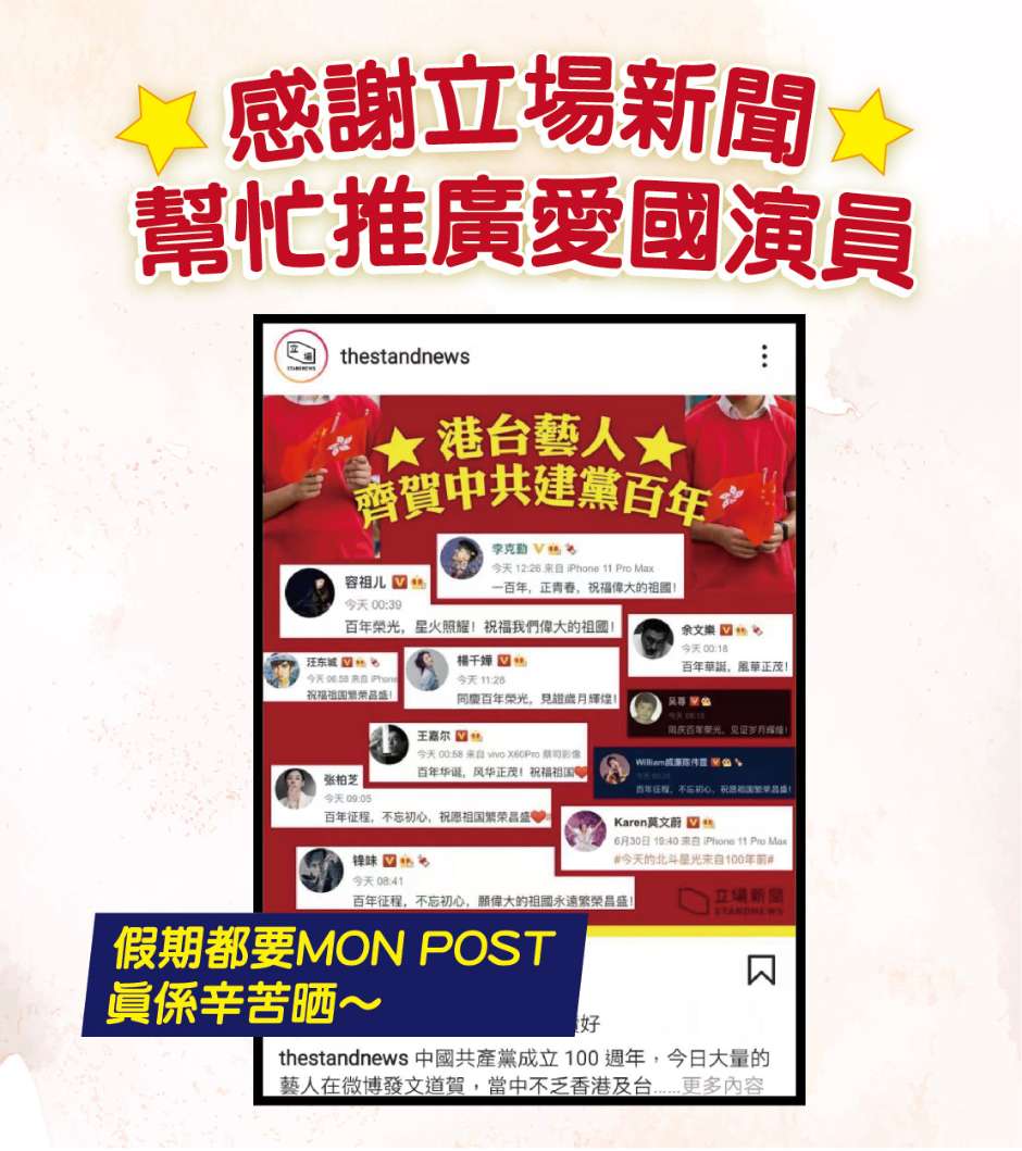 感謝立場新聞幫忙推廣愛國演員