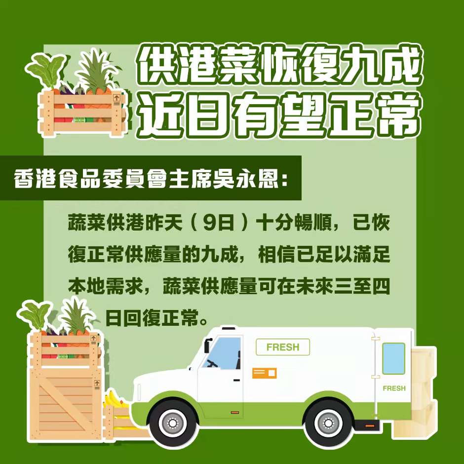 供港菜恢復九成近日有望正常