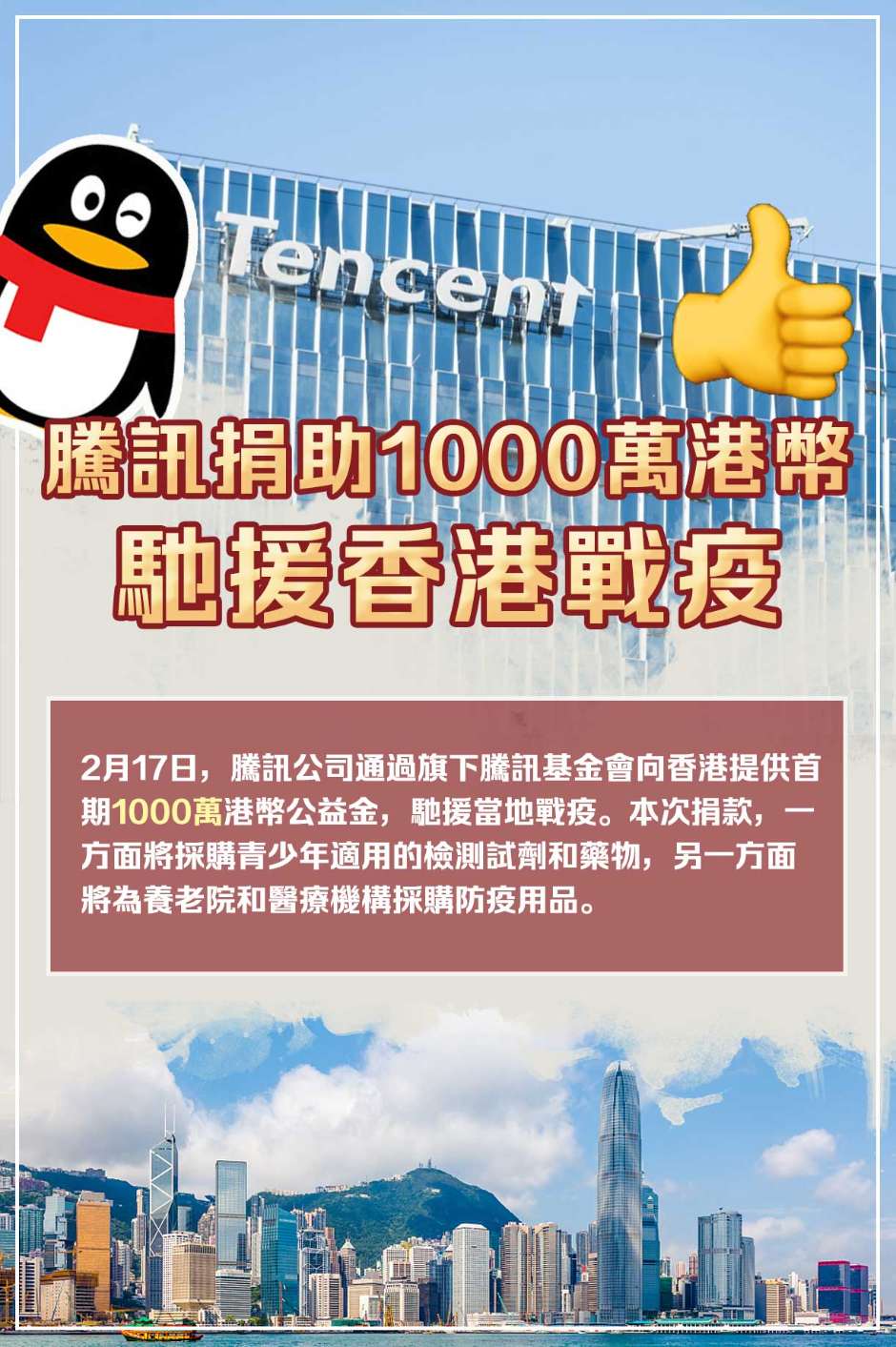 騰信捐助1000萬港幣馳援香港抗疫