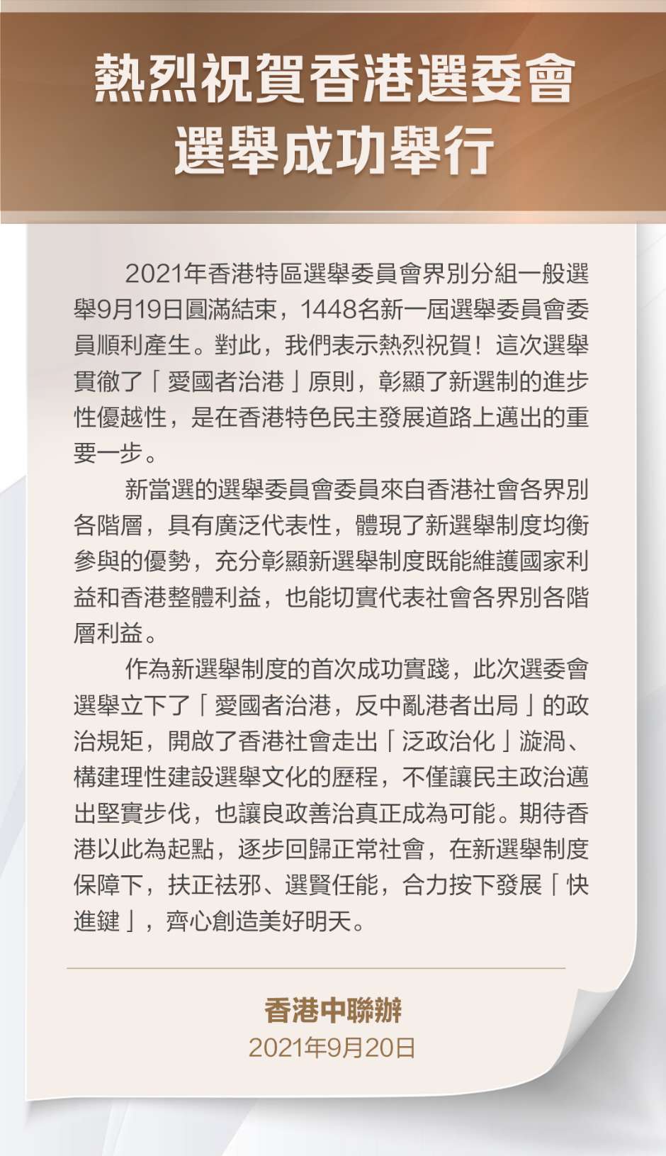 熱烈祝賀香港選委會選舉成功