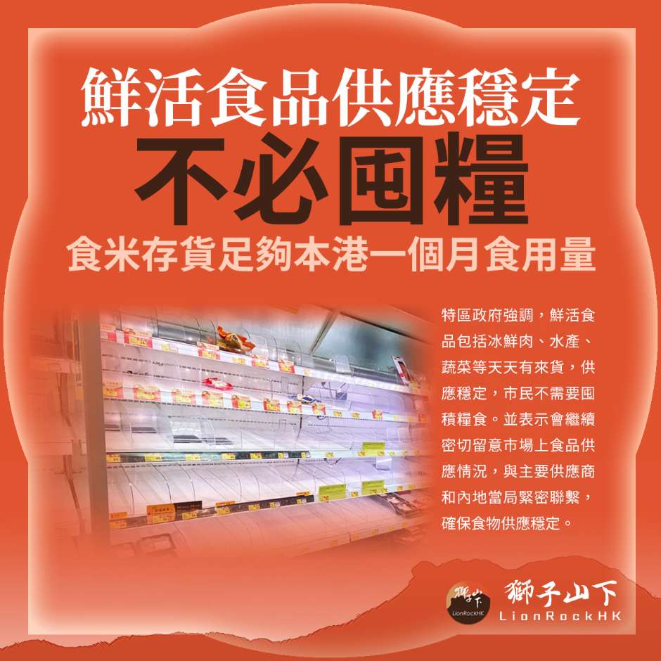 鮮活食品供應穩定,不必囤糧食