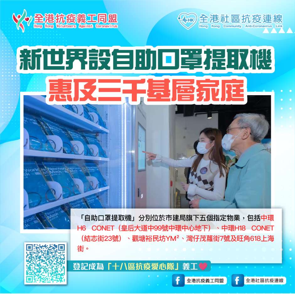 新世界自助口罩提取機 惠及三千基層家庭