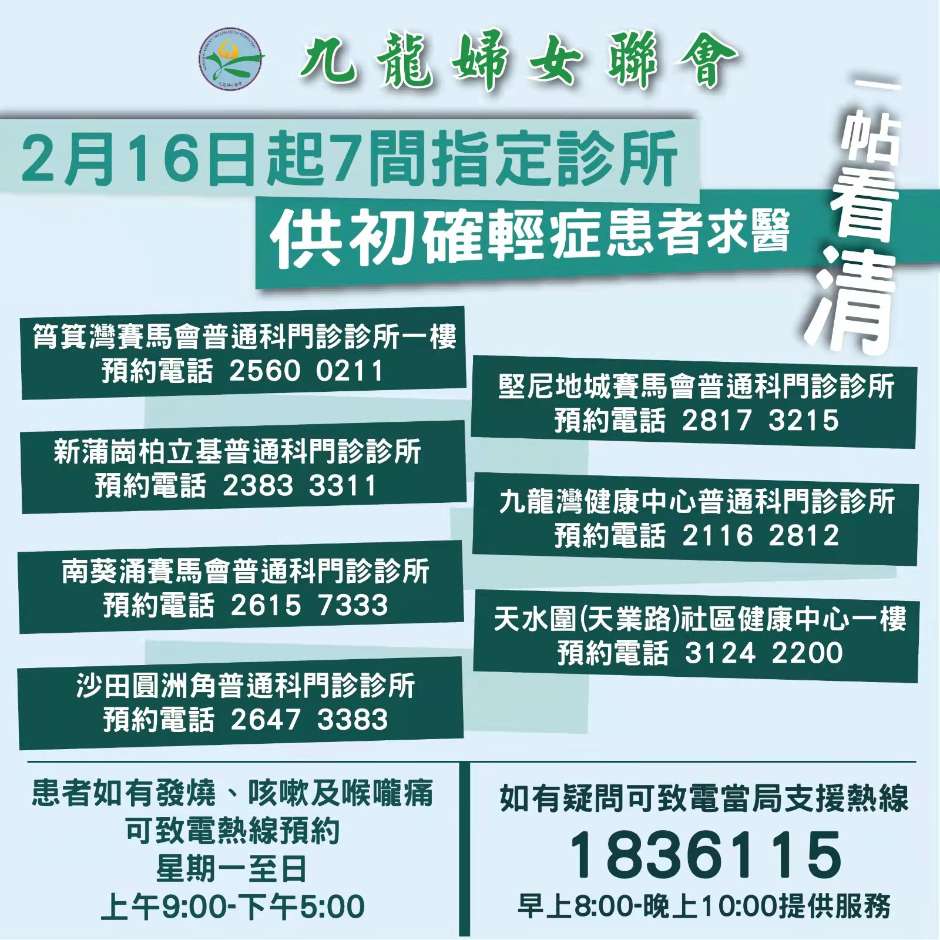 7間指定診所供初症患者求醫