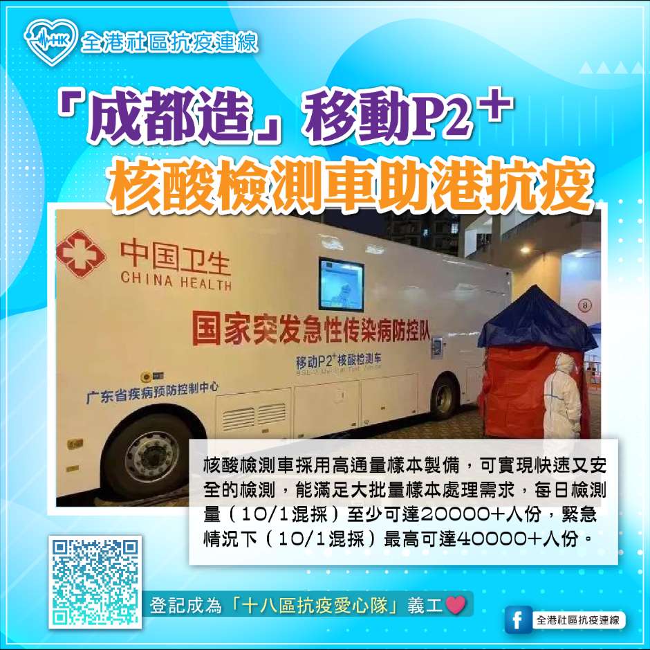 成都造 移動P2+ 核酸檢測車助港抗疫