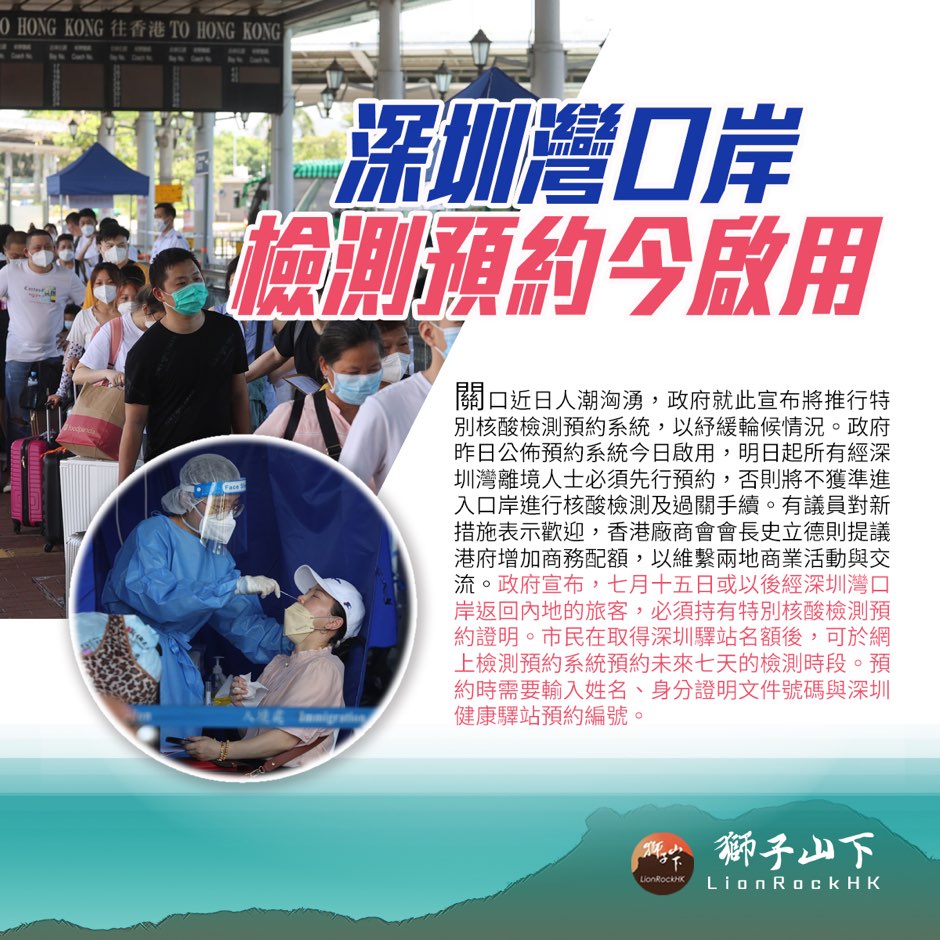 深圳灣口岸檢測預約今啟用