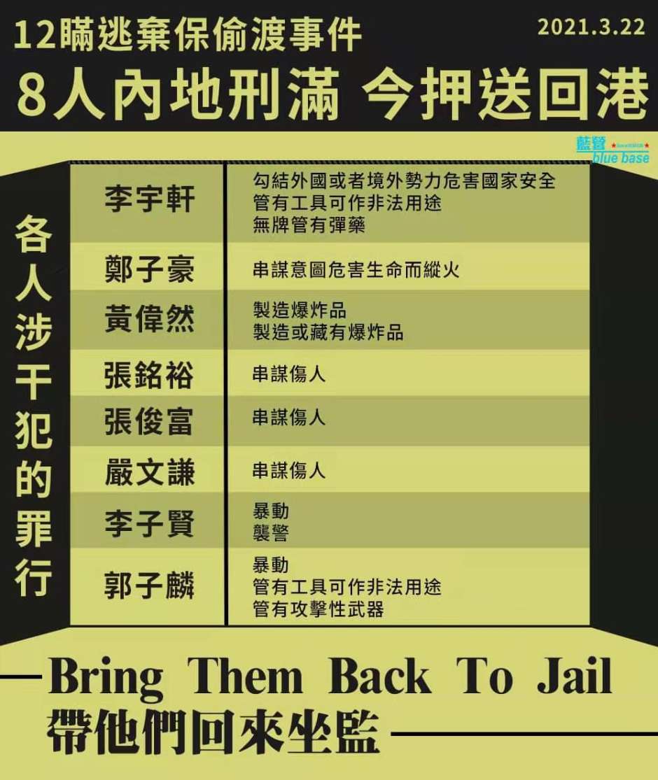 8人內地刑滿 今押送回港