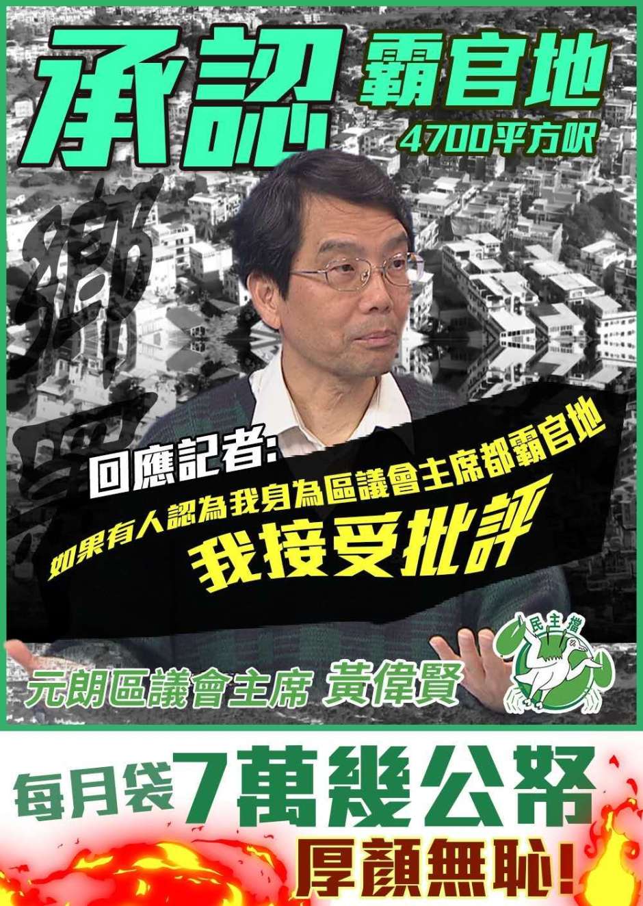 黃偉賢承認霸官地
