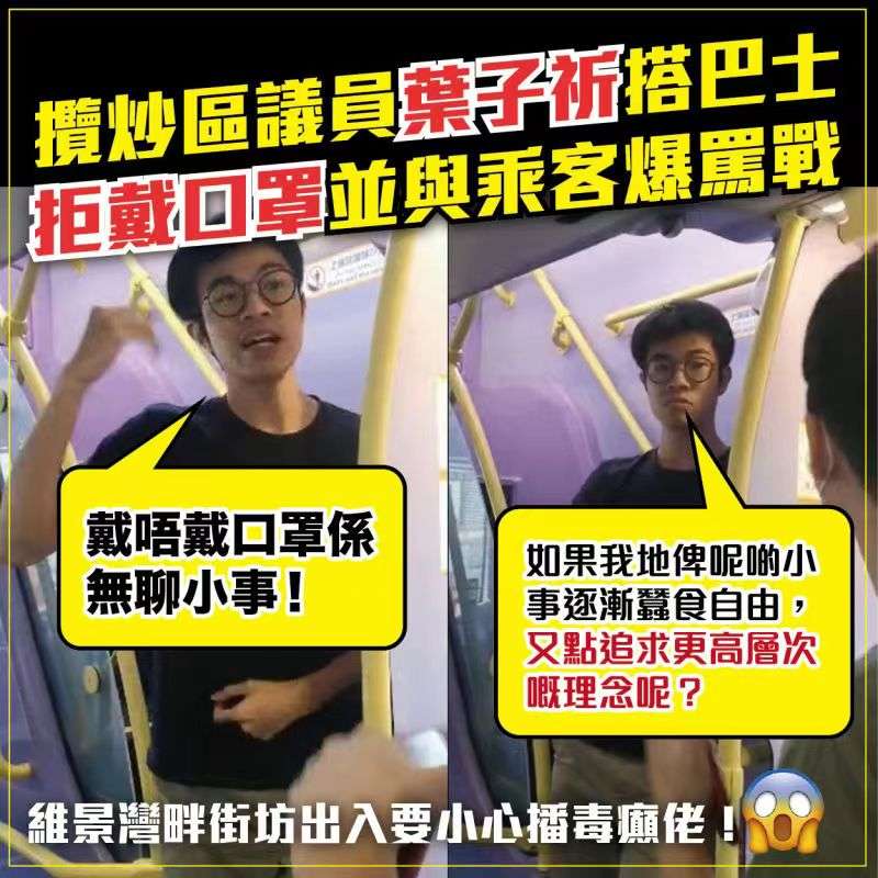 葉子祈搭巴士拒戴口罩與乘客駡戰