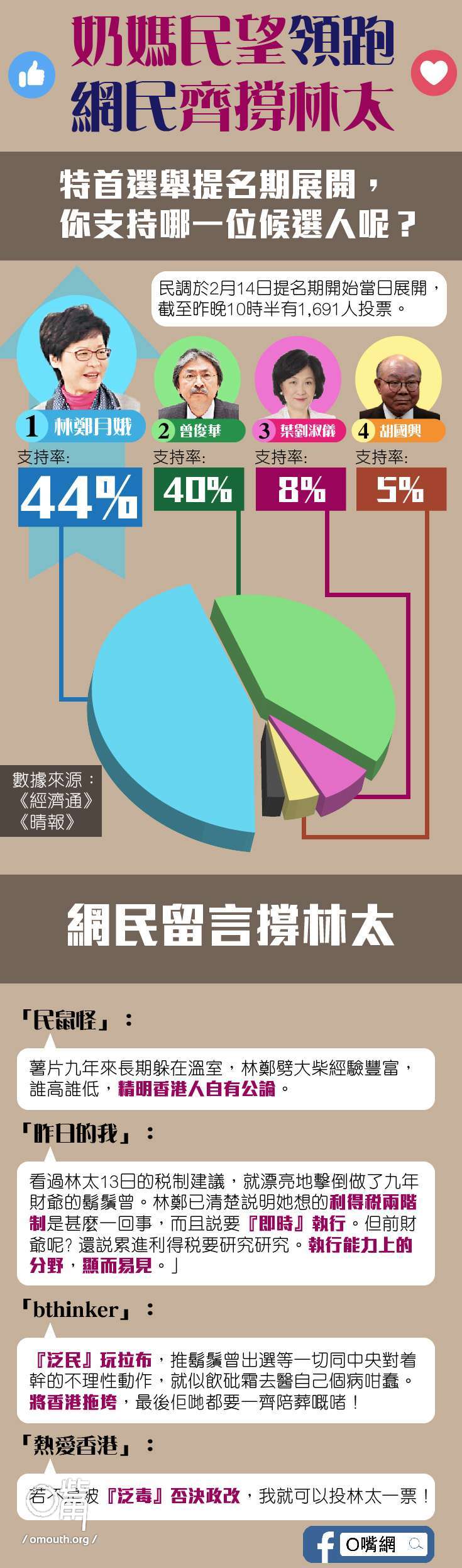 【O嘴出品】最新民調顯示:奶媽民望領跑,網民