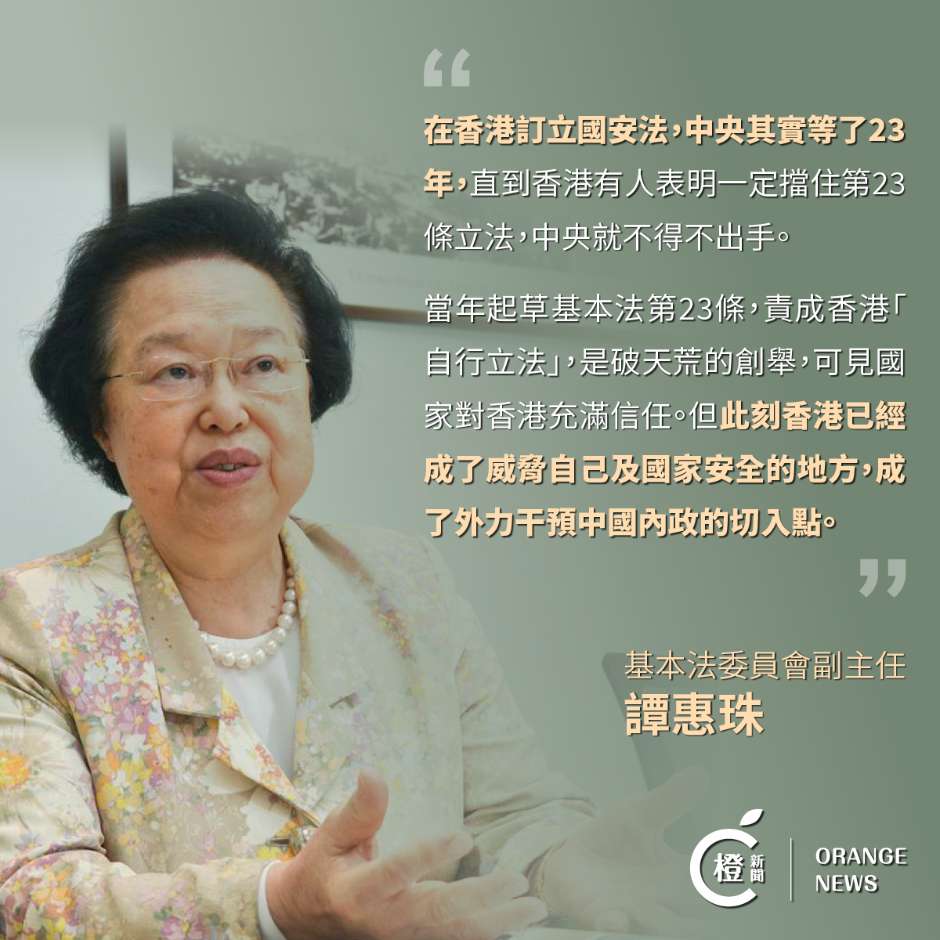 譚惠珠:中央等了23年才立法 外力干預令中央須出手