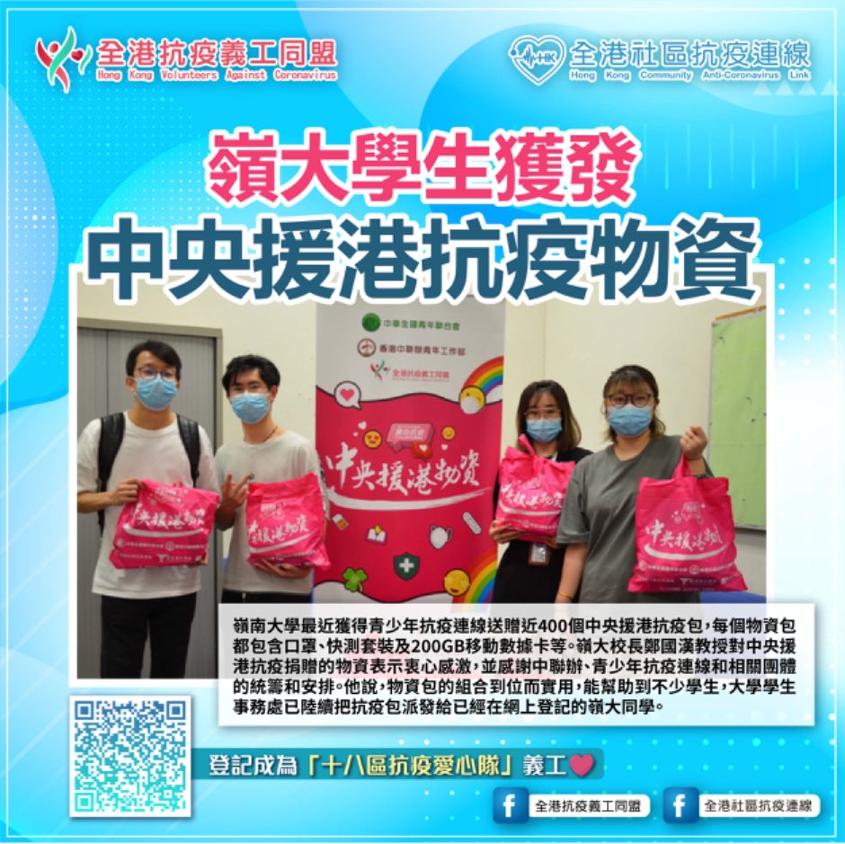 嶺大學生獲發抗疫物資