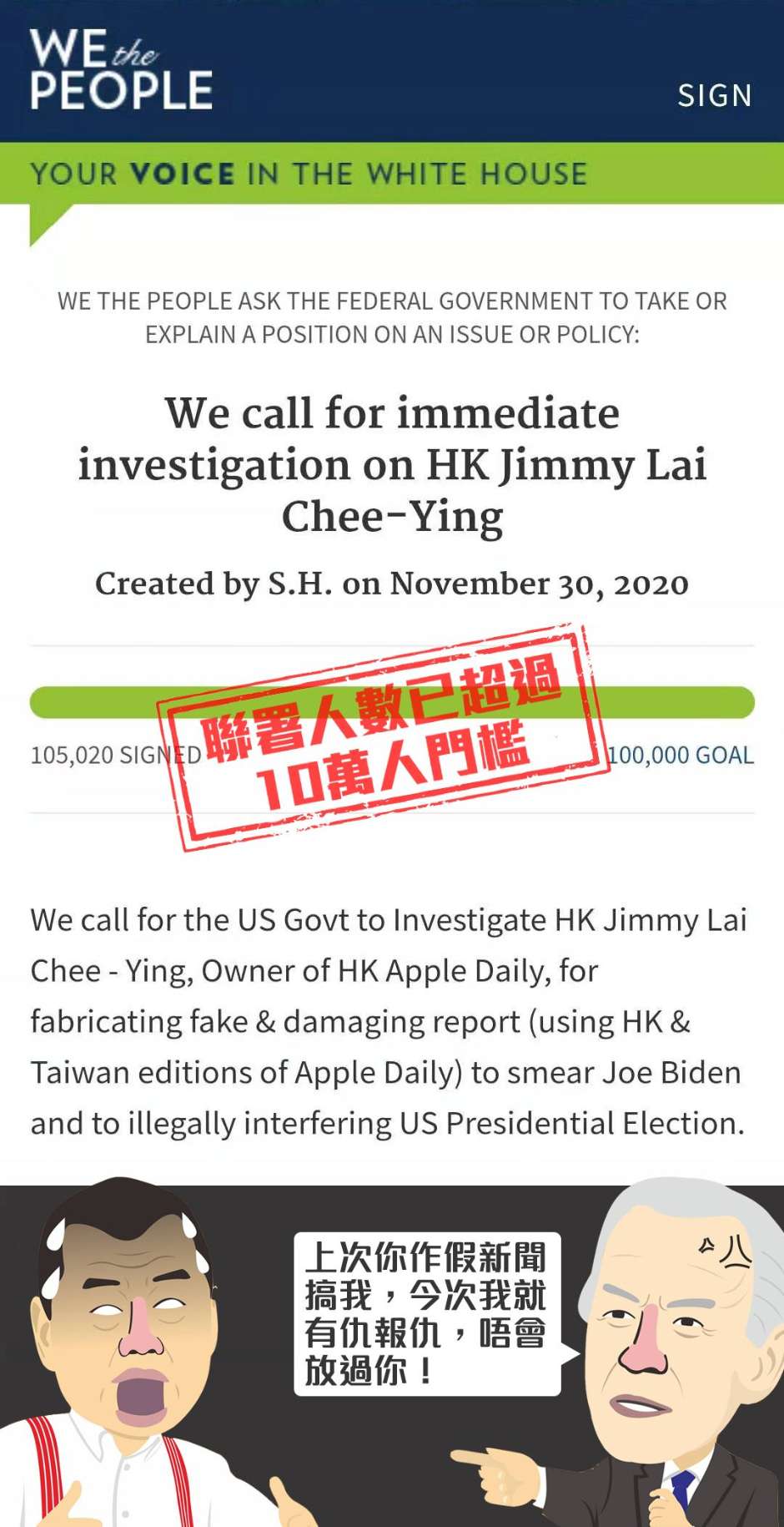 聯署人數已超過10萬
