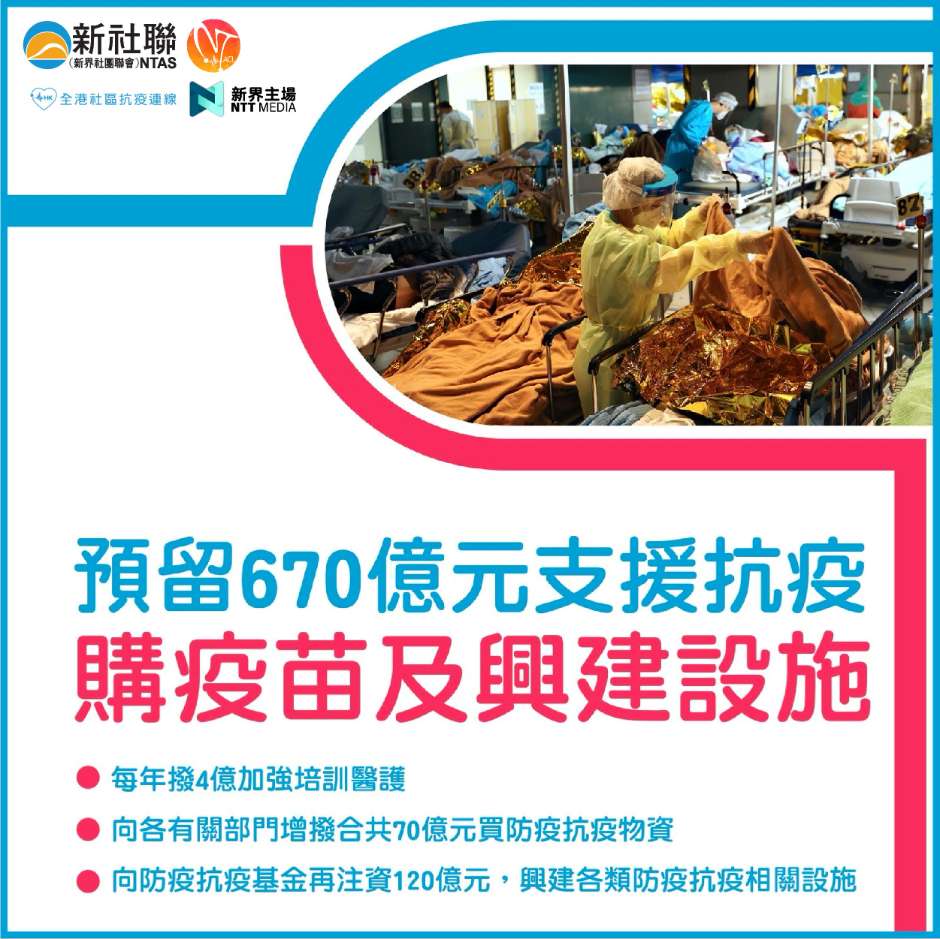 預留670憶元支援抗疫 購疫苗及興建設施