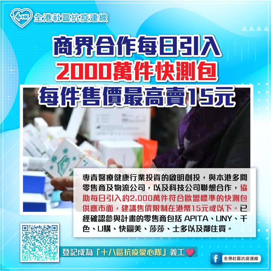 2000件快測包每件售價最高賣15元