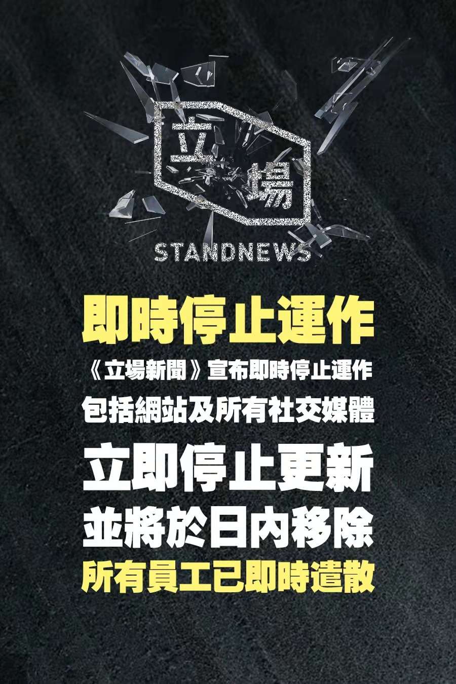 立場即時停止運作