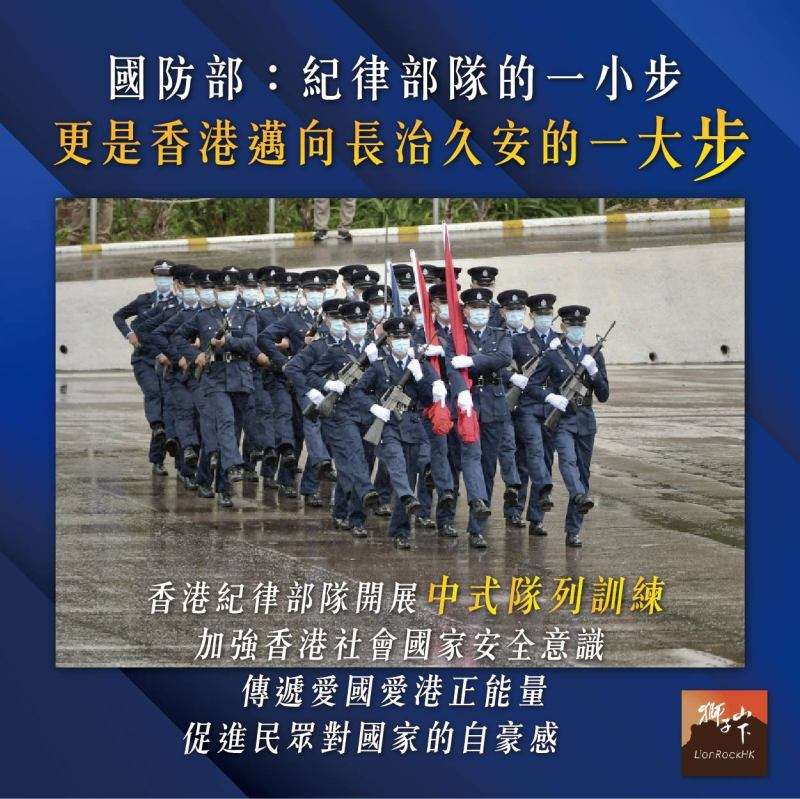 國防部: 紀律部隊的一小步 更是香港邁向長治久安的一大步