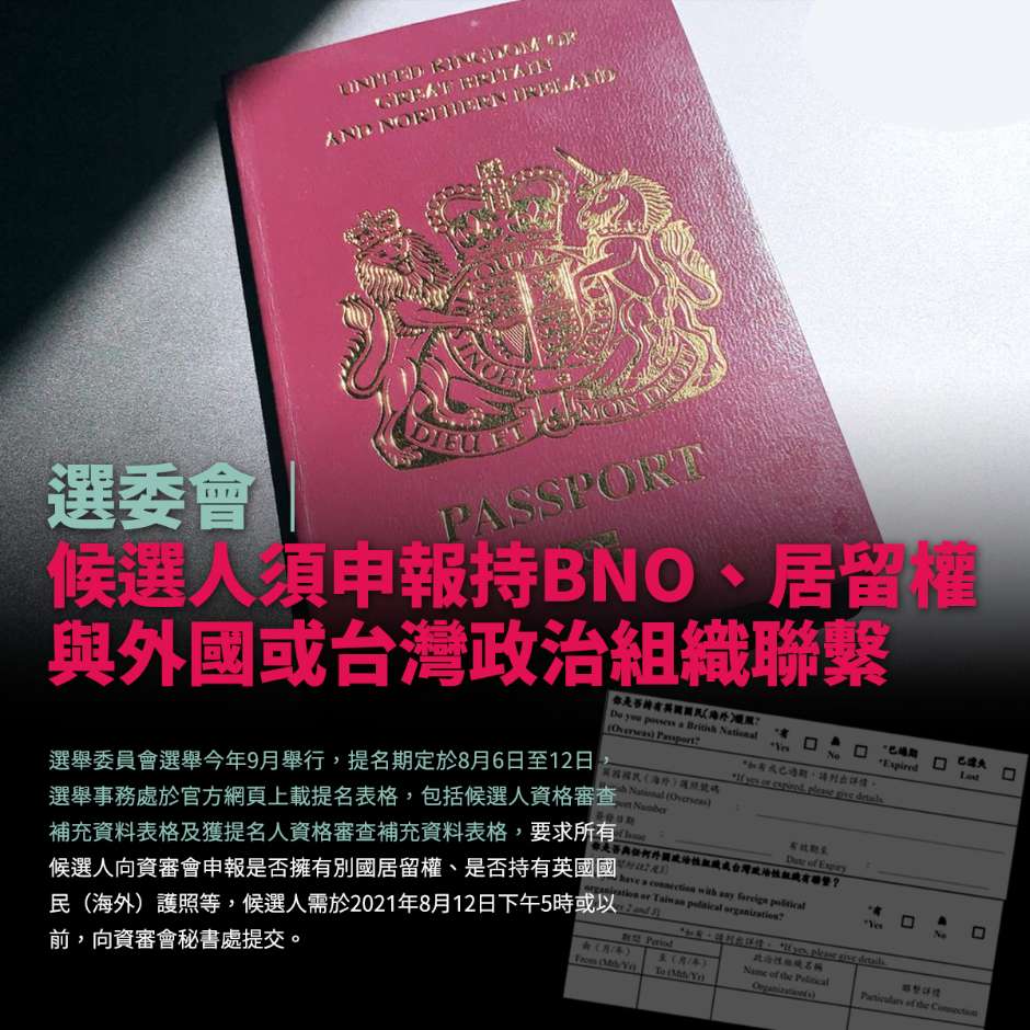 選委會後選人需申報持BNO......