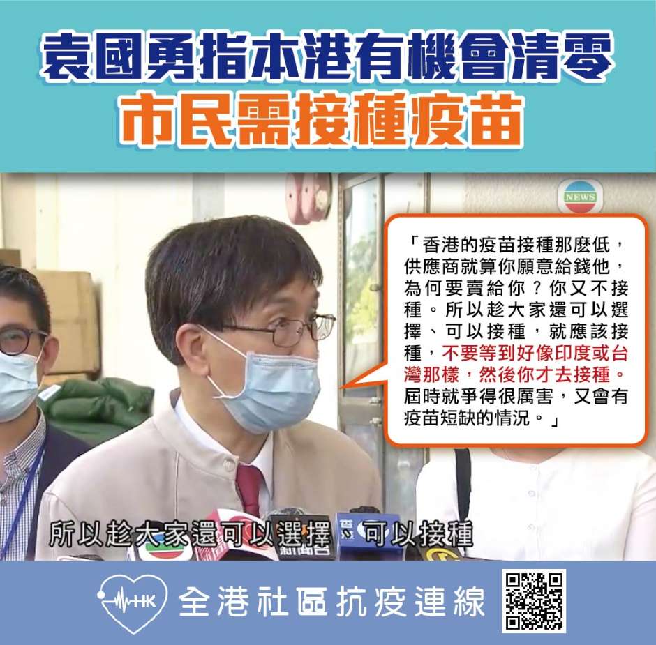 市民需接種 本港有機會清零