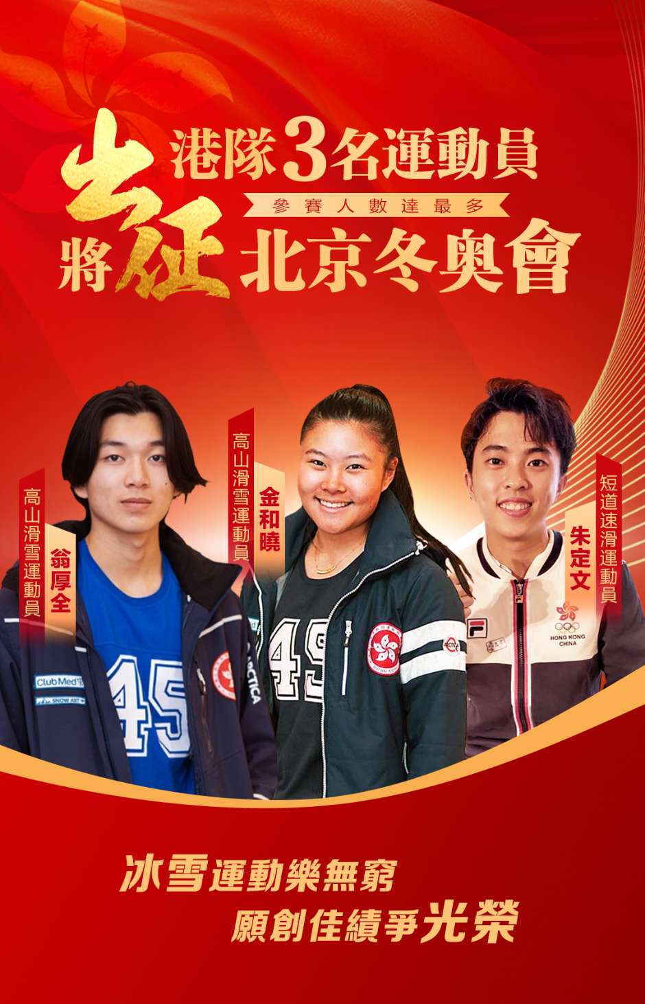 港隊3名運動員將出徵北京冬奧會