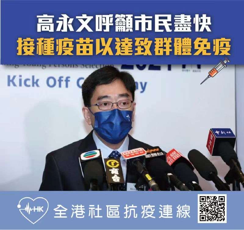 高永文呼籲市民緊快接種以達至群體免疫