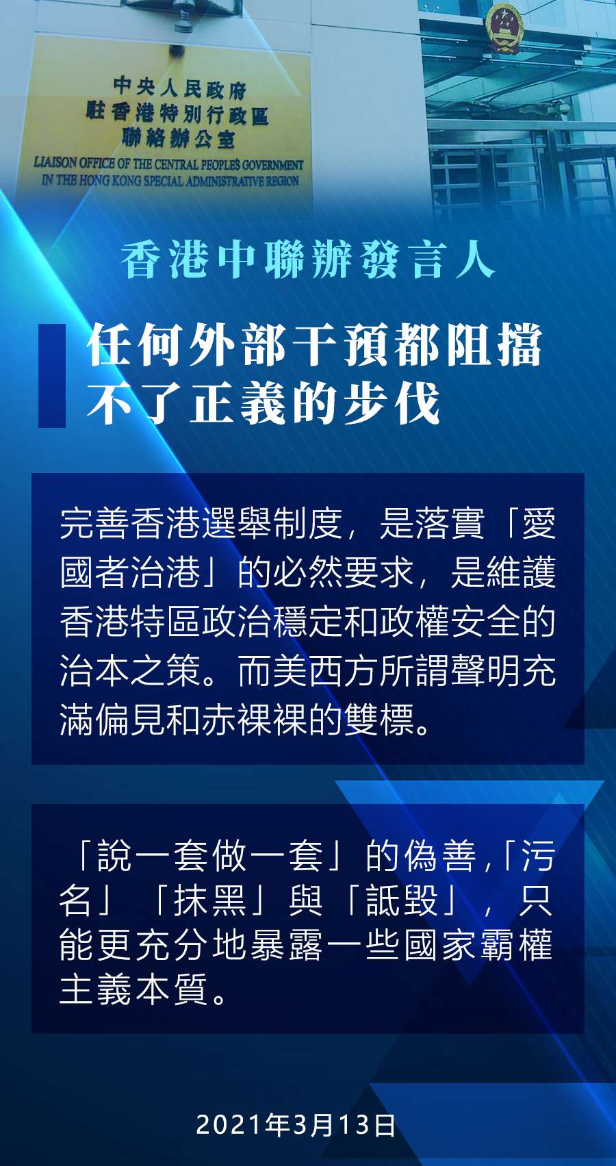 任何外部干預都阻擋不了正義的步伐