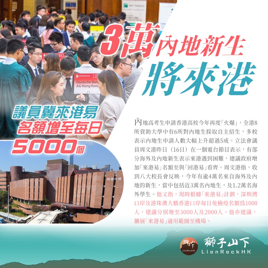 3萬內地新生將來港