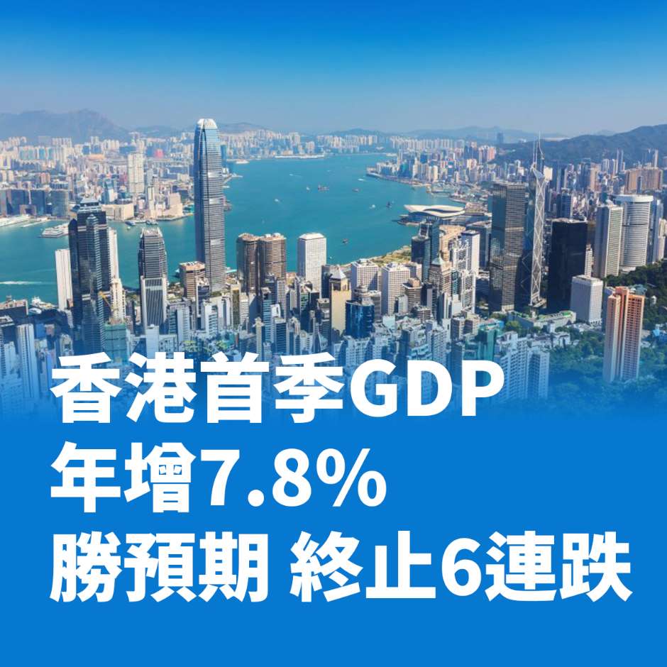 香港首季GDP年增7.8%