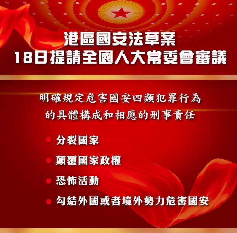 港區國安法草案: 18日提請全國人大常委會審議