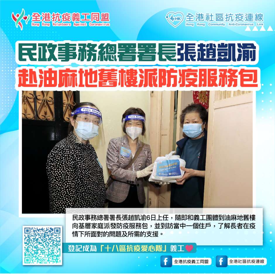 趙凱渝赴油麻地舊樓派抗疫包