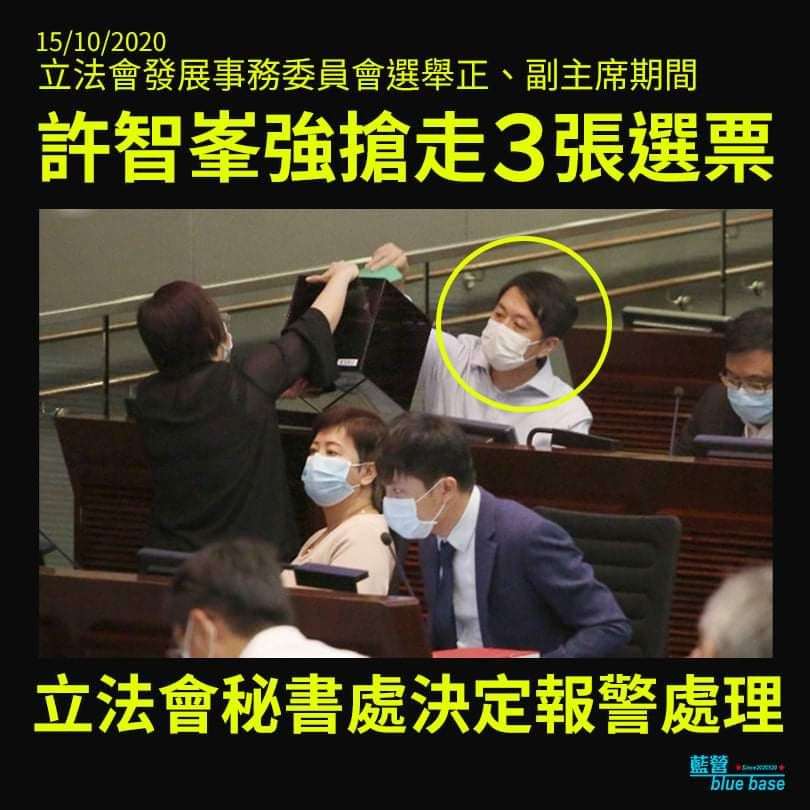許智峯強搶走3張選票 立法會秘書決定報警處理