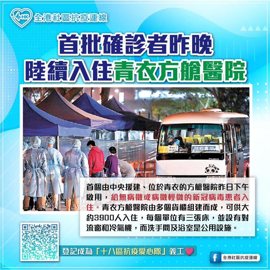 首批確診者入住青衣方艙醫院